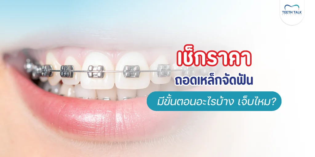 ในที่สุดวันที่รอคอยก็มาถึง! หลังจากอดทนกับการจัดฟันมาเป็นเวลานาน ก็ถึงเวลาปลดล็อกรอยยิ้มสวยใสไร้เครื่องมือ แต่ก่อนจะถึงวันนั้น หลายคนก็มักมีคำถามสำคัญว่า ถอดเหล็กจัดฟัน ราคาเท่าไหร่? มีขั้นตอนอะไรบ้าง แล้วต้องเตรียมตัวอย่างไร? บทความนี้ Teeth Talk Dental Clinic ได้รวบรวมทุกคำตอบที่คุณต้องรู้ เพื่อให้การอำลาเครื่องมือจัดฟันของคุณเป็นไปอย่างราบรื่นและมั่นใจที่สุด