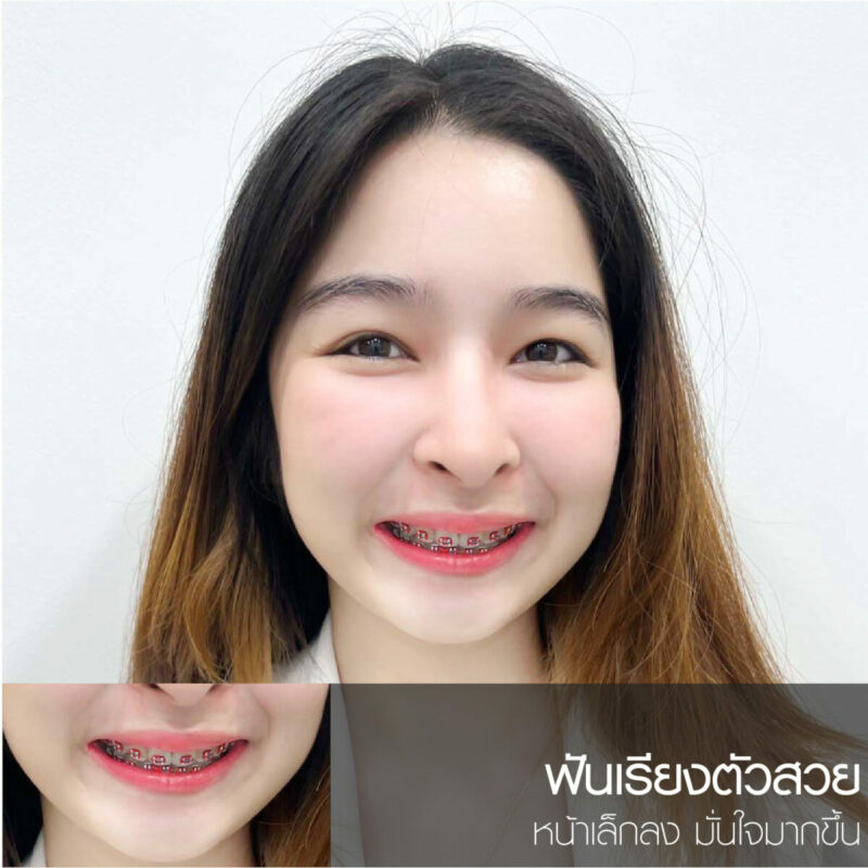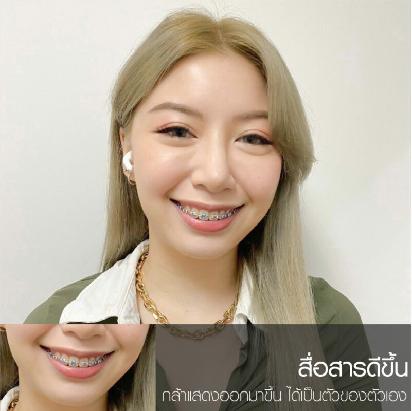 - ให้ความสวยงาม มองไม่เห็นเครื่องมือจัดฟัน จากด้านหน้า