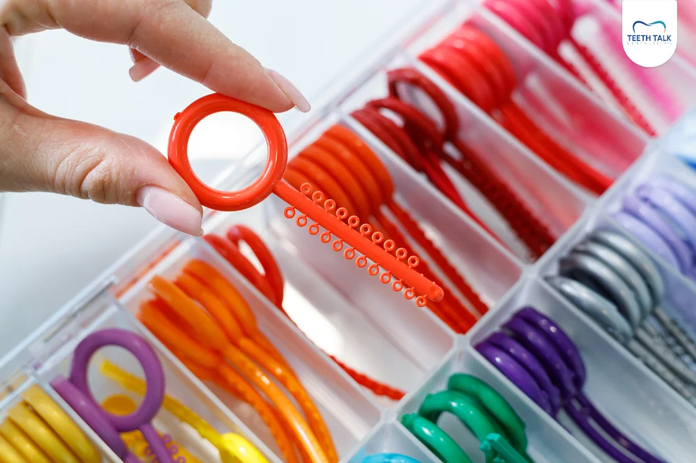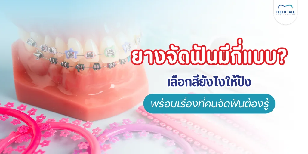 สำหรับการจัดฟันแล้ว หนึ่งในโมเมนต์ที่หลายคนตั้งตารอคอยในทุก ๆ เดือนคงหนีไม่พ้น “การเลือกสียางจัดฟัน” ที่เปรียบเสมือนการเปลี่ยนลุคใหม่ให้กับรอยยิ้ม แต่เคยสงสัยไหมว่า ยางเส้นเล็ก ๆ สีสันสดใสเหล่านี้มีความสำคัญมากกว่าแค่ความสวยงาม ในบทความนี้ Teeth Talk Dental Clinic จะพาทุกคนไปรู้จักกับยางจัดฟัน หัวใจสำคัญที่ช่วยให้การเคลื่อนฟันเป็นไปอย่างมีประสิทธิภาพ ตั้งแต่ประเภทของยางแต่ละแบบ ทำไมต้องเปลี่ยนทุกเดือน พร้อมเทคนิคการเลือกสีให้เข้ากับตัวเองที่สุด อ่านจบบทความนี้ รับรองว่าคุณจะเข้าใจเรื่องยางจัดฟันมากขึ้นอย่างแน่นอน!