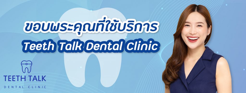ขอบพระคุณที่ไว้วางใจ TEETH TALK DENTAL CLINIC กรกฎาคม 13, 2020 โปรโมชั่นพิเศษ สำหรับคุณเท่านั้น !! ติดต่อสอบถาม ปรึกษาเรื่องฟัน ไม่มีค่าใช้จ่าย
